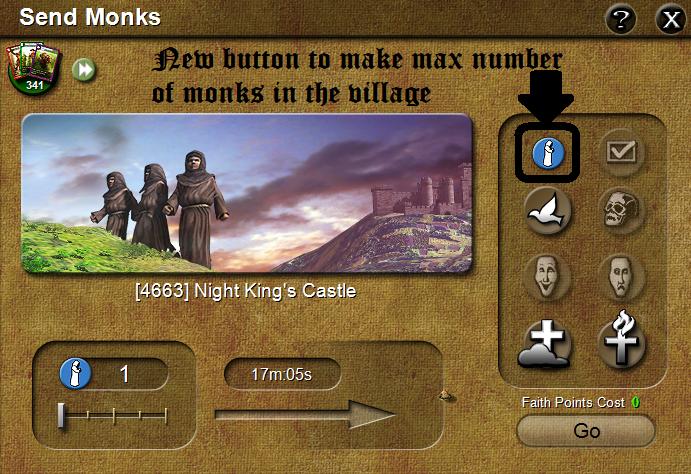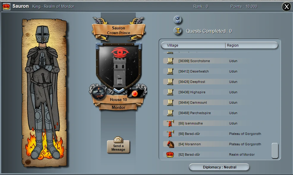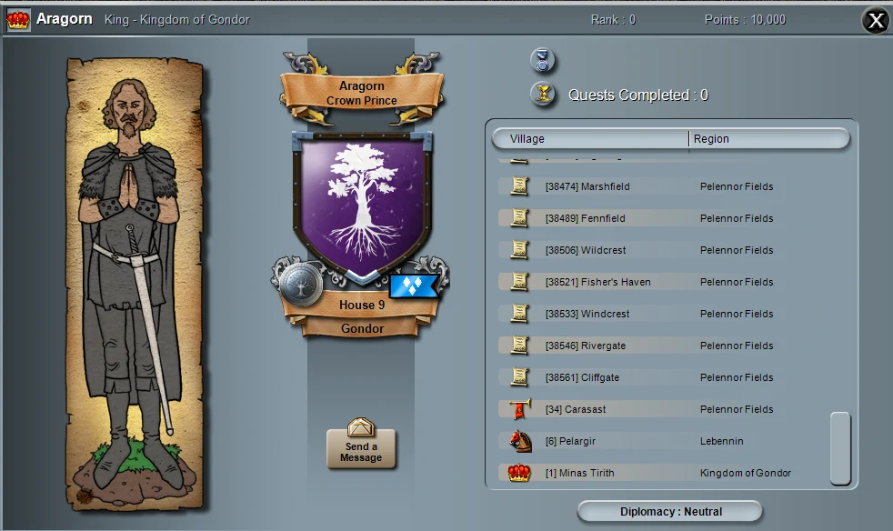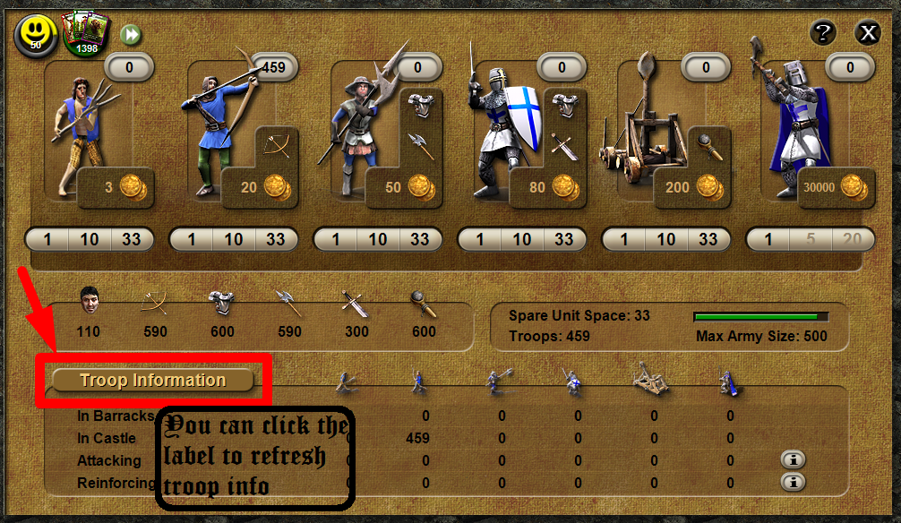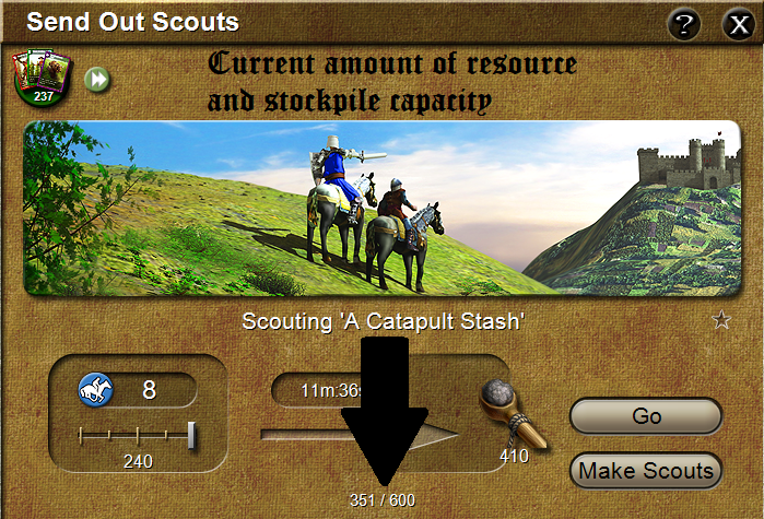 - Send Scouts panel shows current resource level, stockpile capacity, option to make scouts