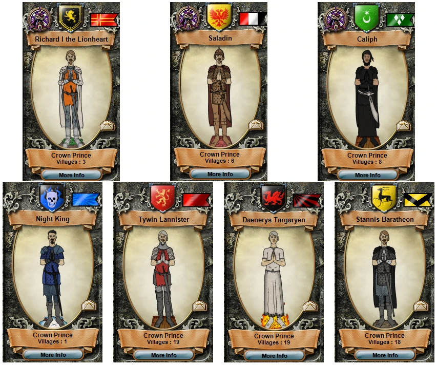 - 4 AI characters from Game of Thrones: Night King, Tywin Lannister, Daenerys Targaryen, Stannis Baratheon