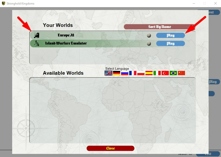 World map, Village screen and Castle screens