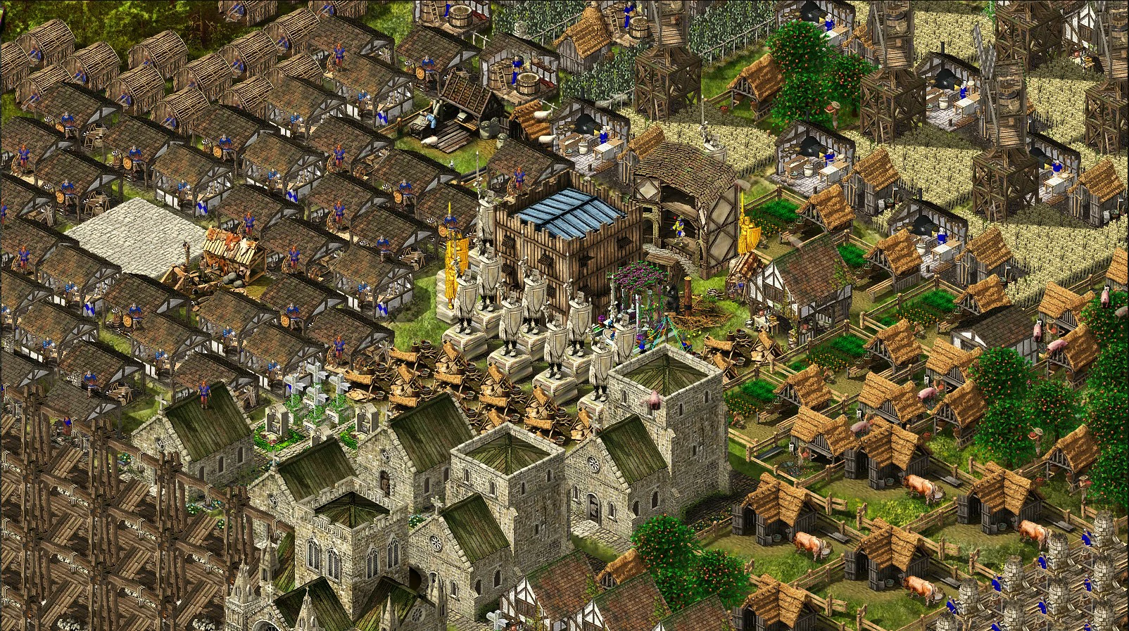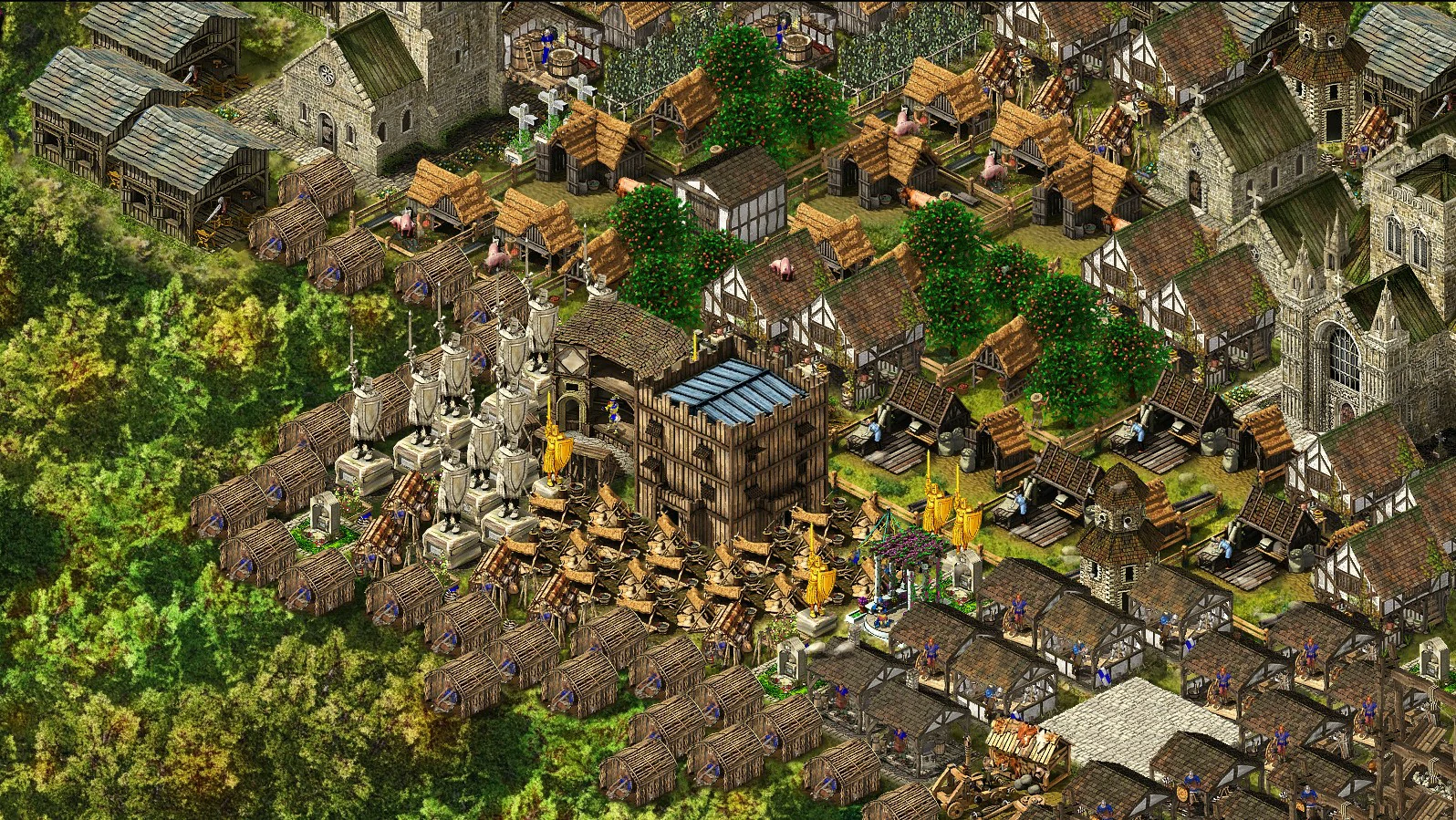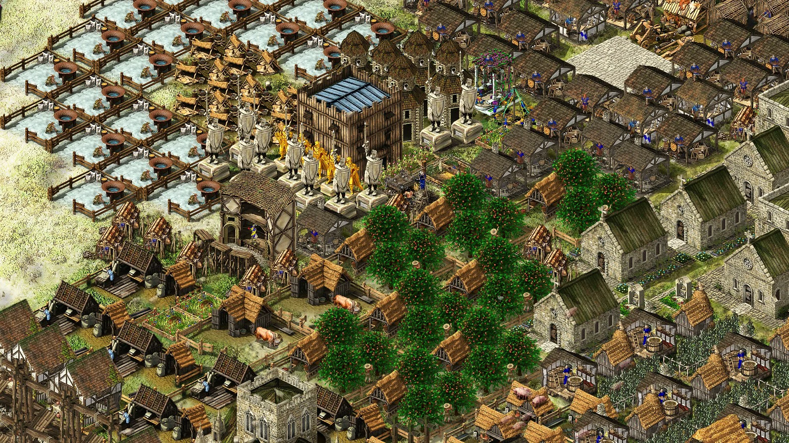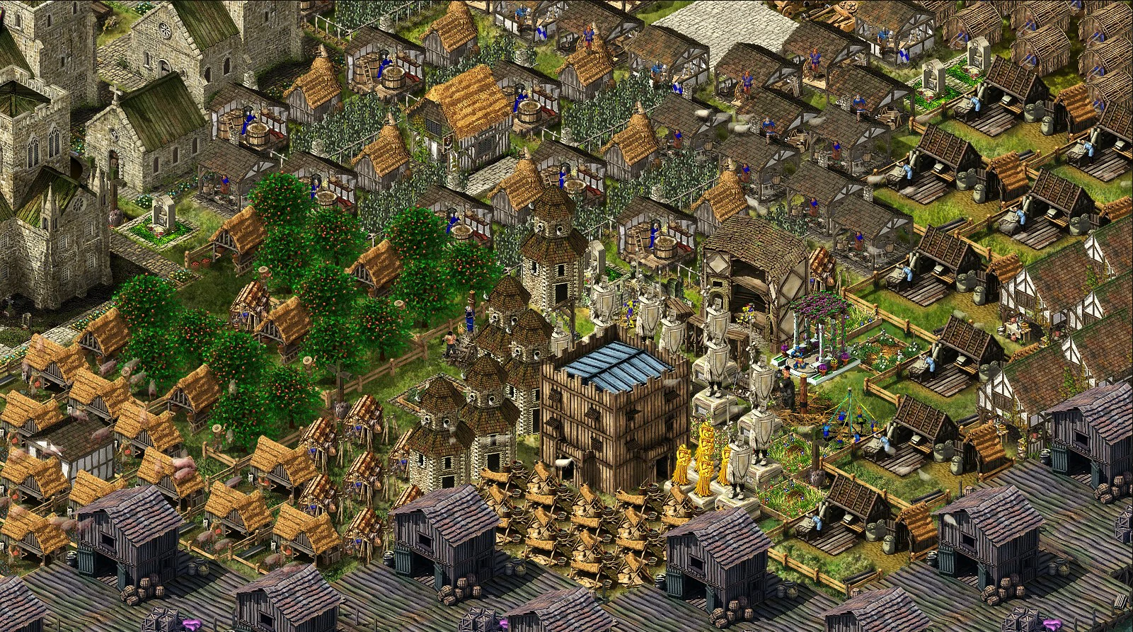 Both teams can fortify friendly AI castles by sending them pitch and repair them by sending them stone.