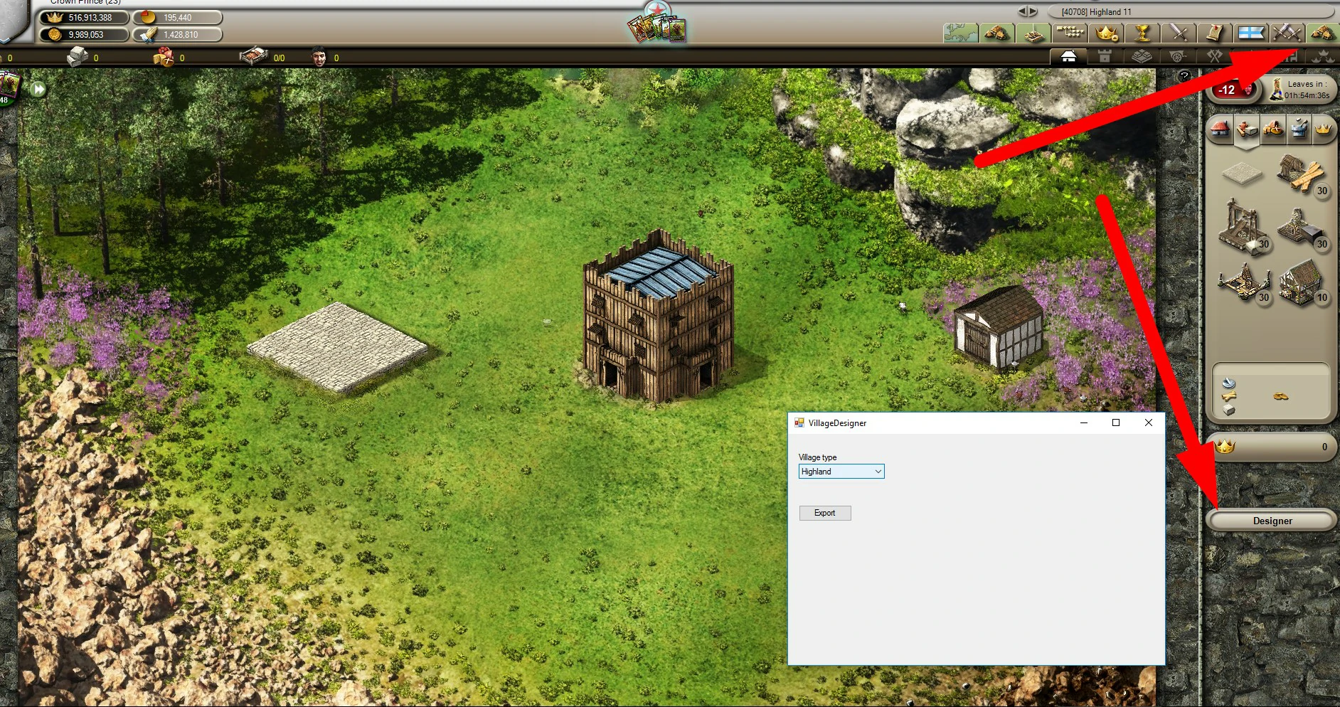 Trade, Scouting, Village, Recruiting, Castle, Predator tabs